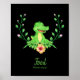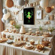 Panneau de table pour vos invités pour votre baby shower avec un joli alligator aquarelle au-dessus d'une couronne tropicale fleurie ornée d'un hibiscus jaune et de verdure. Texte vert citron "nourriture" sur arrière - plan noir sous alligator.