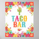 Poster du bar Taco - Fiesta Party Table Sign - Une façon amusante de décorer votre table de bar taco avec cette affiche du bar taco, avec des fleurs colorées, sombrero et cactus. Juste encadrer et placer sur votre table.