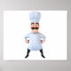 Ce design est un chef. Le chef a l'air joyeux et heureux. Ce chef design a l'air super sur cette affiche