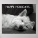 Une affiche de chien Westie (West Highland White Terrier) est maintenant disponible. Cette affiche adorable serait le cadeau de Noël parfait pour un ami, un membre de la famille ou un régal pour vous-même. L'affiche montre une image en noir et blanc d'un magnifique petit chien Westie endormi, agréable et confortable. En haut de l'affiche au centre se trouve la mention "HAPPY HOLIDAYS..." en lettres blanches. Si vous aimez les chiens, vous aimerez cette affiche de chien.