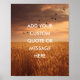Apportez chaleur et inspiration dans votre maison avec cette affiche de terrain couché de soleil personnalisée. Doté d'un champ de blé doré à la tombée de la nuit et d'oiseaux qui s'envolent dans le ciel, ce design saisit à la fois la paix et la beauté. Ajoutez votre citation préférée, votre message personnel ou des mots significatifs pour créer une oeuvre d'art unique. Disponible en plusieurs tailles et aussi en téléchargement instantané, cette affiche est parfaite pour les salons, les chambres, les bureaux, ou comme un cadeau personnalisé réfléchi. Avec son mélange de sérénité naturelle et de texte personnalisé, il devient un art mural intemporel qui fait que chaque espace se sent spécial. Ajoutez votre propre texte pour le rendre vraiment unique et stimulant.