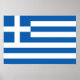 Le drapeau de la Grèce (communément appelé "bleu-blanc ciel" ou "bleu-blanc" et en grec : "Γ α ν λ λ " ou " "), officiellement reconnu par la Grèce comme l'un de ses symboles nationaux, est basé sur neuf bandes horizontales égales de bleu alternant avec blanc. Il y a un canton bleu dans l'angle supérieur du côté du treuil, portant une croix blanche ; la croix symbolise le christianisme orthodoxe oriental, la religion établie des Grecs de Grèce et de Chypre. Selon la tradition populaire, les neuf syllabes représentent les neuf syllabes de l'expression Ε λ θ υ , les cinq singes bleus pour les syllabes " " et les quatre bandes blanches "Liberté ou Mort", les cinq singes bleus pour les syllabes " " et les blanches " ". Les neuf bandes représentent également les lettres du mot "liberté" (Ε λ sont θ ). Il y a aussi une théorie différente, que les neuf bandes symbolisent les neuf Muses, déesses de l'art et de la civilisation (neuf ont traditionnellement été l'un des numéros de référence pour les Grecs). Le rapport officiel de drapeau est de 2:3.