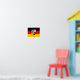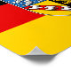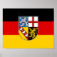 Poster avec drapeau de Sarre; dessin avec tricolore horizontal de noir, rouge et jaune (or), avec armoiries de l’Etat au centre