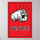 Noir & Blanc sur fond rouge arrière illustration rétro du doigt pointant vers le spectateur avec le mot GENIUS sous lui.