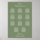 Sage Green 11 Tableau Mariage de table Poster, s'il vous plaît personnaliser les noms du couple et les noms des invités ainsi que l'un des autres textes que vous souhaitez personnaliser. Une affiche élégante avec un élégant texte blanc sur un arrière - plan vert sage.