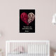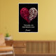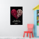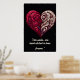 Cette affiche frappante présente un design cardiaque complexe contre un arrière - plan noir profond, symbolisant l'union harmonieuse de deux âmes distinctes mais complémentaires. La moitié gauche du coeur brille de rouge pourpre, tandis que la moitié droite brille de blanc crème lumineux, créant un contraste visuel puissant. Les deux côtés sont ornés de motifs tourbillonnants élaborés qui rappellent l'art baroque ou tribal, avec des lignes gravées détaillées circulant sans heurts entre les deux moitiés. Le défilement orné crée un sens du mouvement et de la connexion entre les deux individus, ce qui suggère le lien complexe entre deux individus. Au bas de l'image, l'écriture élégante dit "Deux âmes, une coeur gravée dans l'amour pour toujours", renforçant le thème de l'union éternelle. Le design sophistiqué combine des éléments d'imagerie romantique traditionnelle avec un style artistique moderne, presque mystique, qui l'élève au-delà de l'imagerie valentine conventionnelle.