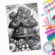 Fun adulte fleurir maison de fées fleurie dans une forêt de fleurs botaniques 3D Ai généré coloriage page poster art mur. Parfait pour l'activité pour la relaxation et la pleine conscience. Fait un cadeau parfait !