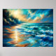 Poster Dur Pastel Dessin Vagues sur une plage