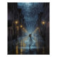 Une scène de nuit numérique rêveuse peinte à l'huile où une fille danse joyeusement sous la pluie dans une rue lumineuse de la ville, des lumières reflétant le pavé humide dans une célébration éblouissante et romantique de la liberté et de l'amour.