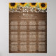 Panneau de bienvenue de mariage avec éclairages de tournesols en bois rustique. Plan de table de mariage avec tournesols en pot Mason