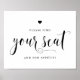 Panneau classique et élégant "Veuillez trouver votre siège" avec écriture manuscrite noire. Ce panneau sera parfait pour les mariages, les baby showers, les bridal showers, les remises de diplômes et autres événements. Veuillez trouver votre siège et bon appétit.