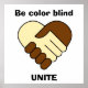 Ein schwarzer Mann und ein weißer Mann schütteln die Hände. Herzförmige Symbole oder Logos. Anti-Rassismus-Slogan auf Plakat