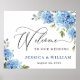 Poster Elégant bleu Hydrangea Eucalyptus Mariage Bienvenu