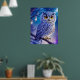 Poster Élégant bleu violet magique Chouette comique AI Ar