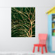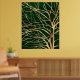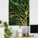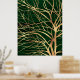 Cette chic parties scintillant en or dessinée à la main dessine la forme de l'arbre et les traits abstraits d'aquarelle vert émeraude sont idéaux pour un décor moderne et minimaliste de maison de luxe, ou des événements spéciaux, avec une silhouette dessinée à la main de l'arbre d'automne avec un arrière - plan de peinture ondulée rayée vert foncé vert de la forêt.