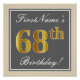 Poster Elégant, gris, Faux Or 68ème anniversaire + Nom