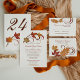 Le tableau d'affichage sur le thème de l'automne présente d'élégants défilés et des feuilles aux couleurs de l'automne, un monogramme des noms des mariées et des mariées et de la date du mariage, ainsi qu'un texte modèle personnalisé pour les numéros de tableau et les noms des invités.