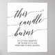 Ce panneau d'écriture calligraphique noire élégant "cette bougie brûle" est parfait pour un mariage simple. Le design neutre présente une affiche minimaliste décorée d'une typographie romantique et fantaisiste.