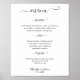 Informez vos invités du menu du jour de ce design simple mais élégant. Ce menu mariage est sur un arrière - plan blanc avec du texte noir. Vous apprécierez la combinaison d'une police de script mariage et d'éléments de menu faciles à lire. Vous avez suffisamment d'espace pour trois cours. À la fin, vous ajouterez vos noms et votre date. Si vous avez besoin d'aide pour personnaliser ceci, contactez le concepteur qui peut vous aider.
