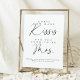 Capturez la magie de votre douche nuptiale avec ce chic "Elegant manuscrit Script How Many Kisses Game Poster." Ce magnifique panneau de douche nuptiale ajoute une touche de sophistication à la célébration. Les clients aimeront deviner combien de bisous Hershey's sont dans le bocal, créant une activité ludique et interactive qui rassemble tout le monde. Les couleurs classiques noir et blanc complètent n'importe quelle décoration, faisant de cette affiche un must pour la future mariée.
