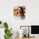 Élégante affiche de la fête de remise des diplômes signe de bienvenue avec la photo de la grad superposée avec "diplômé" dans un script moderne et leur nom et année de classe en simple typographie.