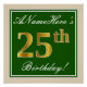 Poster Elégant, Vert, Faux Or 25ème Anniversaire + Nom