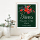 Ce magnifique panneau de noces de faveurs de Noël présente une belle aquarelle de fleurs de poinsettia rouges et de feuilles de pin pour les vacances. Elégante affiche de mariage d'hiver en vert pour un événement de vacances. Jolie décoration fleurie de la réception. S'il vous plaît, prenez une faveur.