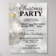 Cette affiche élégante et chic de Noël présente un joli arrière - plan argenté et blanc avec un ornement de Noël blanc et un ruban blanc.