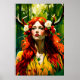L'art généré par l'intelligence artificielle d'un Elén des Voies Elén des Voies, souvent représenté comme une figure ancienne et mystique, est représenté avec un aspect distinctif et captivant dans cette représentation. Elle est montrée avec des cheveux rouges vibrants, symbolisant sa profonde connexion au monde naturel et son esprit enflammé et indompté. Ses cheveux coulent librement, incarnant la nature sauvage et son rôle de gardienne. En plus de sa présence mythique, Elen est ornée d'une paire de magnifiques bois. Ces bois, marque de sa représentation, signifient son lien profond avec la forêt et ses créatures, symbolisant la force, la direction et une profonde compréhension des cycles naturels. Cette représentation d'Elen la place au coeur d'une forêt luxuriante et verdoyante, sa maison naturelle et spirituelle. La forêt qui l'entoure regorge de vie, des arbres anciens aux plus petits fougères, baignés de lumière du soleil qui filtre à travers la canopée. Ce décor met en valeur son rôle de protectrice du désert, mais crée aussi un sentiment de tranquillité et d'harmonie, reflétant son statut de divinité de sentiers et de carrefours, guidant et observant ceux qui traversent le monde naturel. Elen of the Ways, dans ce rendu artistique, est un mélange parfait de beauté sauvage, de force spirituelle et d'un lien profond et constant avec le monde naturel, faisant d'elle un symbole inspirant et puissant pour ceux qui attirent les mystères et les merveilles de la nature.
