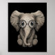Poster Eléphant mignon bébé avec lunettes de lecture Noir