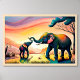 Une peinture d'éléphant qui fait chaud au coeur capture le lien entre une mère et un enfant dans le paysage vibrant de l'Inde. La scène joyeuse reflète une vie heureuse dans le royaume animal, où les éléphants majestueux se promènent librement. Cette oeuvre d'art dégage un charme fantaisiste tout en célébrant la beauté de la faune et les relations qui s'épanouissent dans la nature. Peinture d'art pour votre décor maison. Vous pouvez acheter avec cadre et papier d'art. Taille de l'image du fichier original : 40'x27' pouces (300 ppp).