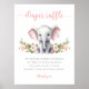 Poster de tombola rose fleurie éléphant bébé douche de couche.