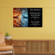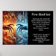 Une étreinte élémentaire est représentée dans cette représentation artistique de deux mains, le feu et la glace. La main bleue glacée, tourbillonnant de gel et de glace, représente la froideur et la clarté. La main orange et rouge vif, tourbillonnant de flammes et de fumée, représente la chaleur et la passion. L'arrière - plan est un dégradé mêlant des tons sombres et fumés qui met en évidence le contraste. Les effets de lumière mettent l'accent sur le thème élémentaire. "Fire And Ice" est au sommet d'une typographie audacieuse et moderne.