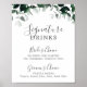 Cette enseigne de boissons émeraude et verdoyante est parfaite pour un mariage boho. Le design élégant et rustique présente des feuilles d'aquarelle vert foncé moody et des eucalyptus aux tons bohèmes modernes.