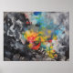 Peinture Abstraite dans de nombreuses couleurs. Les bleus, jaunes et rouges de cette peinture imaginative sont placés dans un arrière - plan de noir, blanc et gris. Cette peinture acrylique semble susciter des sentiments de bonheur et d'excitation.