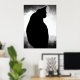 Poster en silhouette de chat noir Image arrière du chat noir tournant la tête sur le côté. Arrière - plan fumé et brumeux.