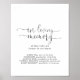 Cette enseigne à script fantaisie en souvenir affectueux est parfaite pour un mariage moderne ou une fête de douche de mariée. Le design simple et élégant présente une typographie classique et fantaisie en noir et gris.