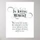 Poster En souvenir affectueux Panneau de table de mémoria