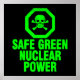 Le slogan "Safe Green Nuclear Power" (Puissance nucléaire verte sans danger) écrit dans une police originale en gros titres en gros caractères, avec un symbole poison au pochoir tout aussi affligé. Vous ne pouvez pas tuer l'ironie.