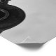Photographie de clôture monochrome haute définition du train d'atterrissage d'un avion de ligne juste avant de se poser.