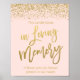 Poster Enseigne de mariage à paillettes dorées rose paste