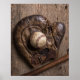 Vintage base-ball, catcher l'emporte et bat on a rustic wooden plank