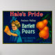 Poster Étiquette Hale's Pride Pear CrateSuisun, CA