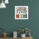 Le design Be Kind se compose d'un groupe mixte de nombreuses personnes au-dessus du message "Be Kind" dans les couleurs arc-en-ciel. Une image de diversité ethnique pour suggérer et soutenir la gentillesse entre tous.