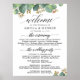 Il s'agit d'une belle affiche de portrait d'accueil signe de programme de mariage avec texte de script eucalyptus.