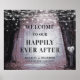 Evermore | Forêt de fée enchantée | Suite de Faire-part de mariage mauve violet. Bois d'imaginaire magique, avec des lampes éthérées à cordes et des orbes de féerie brillant et brillant tout autour. L'image a une lueur lune, pour une soirée romantique lieu mariage éclairé. Ce design envoûtant fera le bonheur de vos invités ! Le texte personnalisable est soutenu par une lumière éclatée à travers les arbres, et entouré de grands chênes. L'arbre principal a une forme de coeur sculpté, avec un monogramme que vous pouvez personnaliser avec vos lettres initiales personnalisées. Evermore est un design de mariage utopique conte de fées, parfait pour votre mariage extérieur et réception. Disponible en plusieurs coloris pour correspondre à votre décor mariage. - Réception De Mariage Heureusement Jamais Après L'Affiche de bienvenue! ~ Regardez ma boutique pour voir l'ensemble de la suite pour ce design!