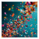 Un rendu numérique de beaucoup de confettis colorés explosant en vue macro.