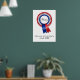 Une affiche modèle. Faites votre propre récompense ou prix. Rosette rouge, blanche et bleue avec rubans. Entièrement personnalisable - ajoutez votre propre texte pour faire votre message. Redimensionner ou faire pivoter. Montré avec le texte Employé du mois.