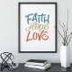 Faites une déclaration avec cette belle affiche "Faith Hope Love", . Cette affiche présente un superbe design de calligraphie de brosse, conçu de façon expressive avec soin et attention aux détails. Le message "Faith Hope Love" est un rappel intemporel des valeurs basées sur la foi qui comptent vraiment.