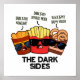 The Dark Sides Funny Fast Food Pun propose un joli trio de plats d'accompagnement : frites, bâtonnets de pain et anneaux d'oignon qui ont un côté sombre. Un cadeau de Perfect Puns pour la famille et les amis qui aiment les puns de nourriture mignonne.